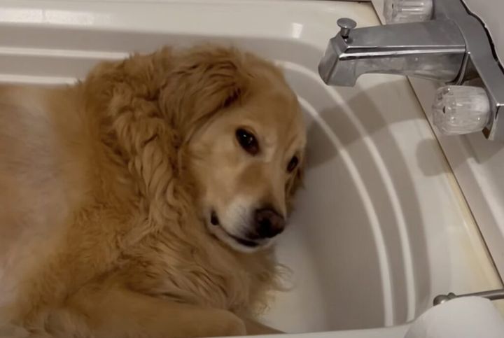 気がついたらこんな場所に(笑) バスタブが気に入っちゃった犬さん。