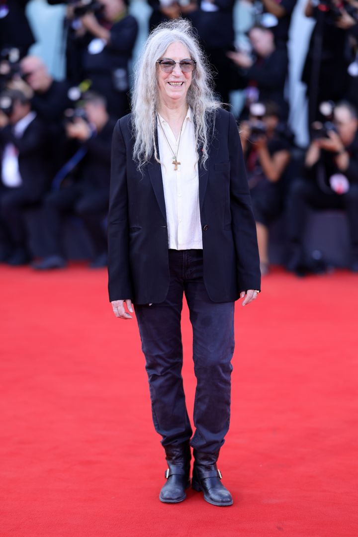 2人のファッションに共通していること。それは、周りの目を気にしない、飾らない着こなしであるということだ。ヴェネチア国際映画祭では、洗練されたフォーマルなスタイルが求められる。だがパティ・スミスはスタイル・アイコンよろしく、着古したブレザー、白いボタンアップシャツ、穿き込んだスキニーデニムというどこまでも自分らしいコーデでレッドカーペットに登場した。ファッションは自己表現であることを考えると、レッドカーペットだからといって着慣れないガウンを纏うわけでもなく、普段と変わらないスタイルを貫く姿勢はあっぱれだ。