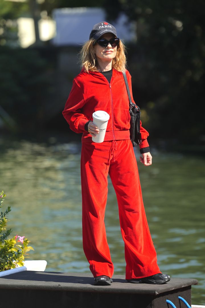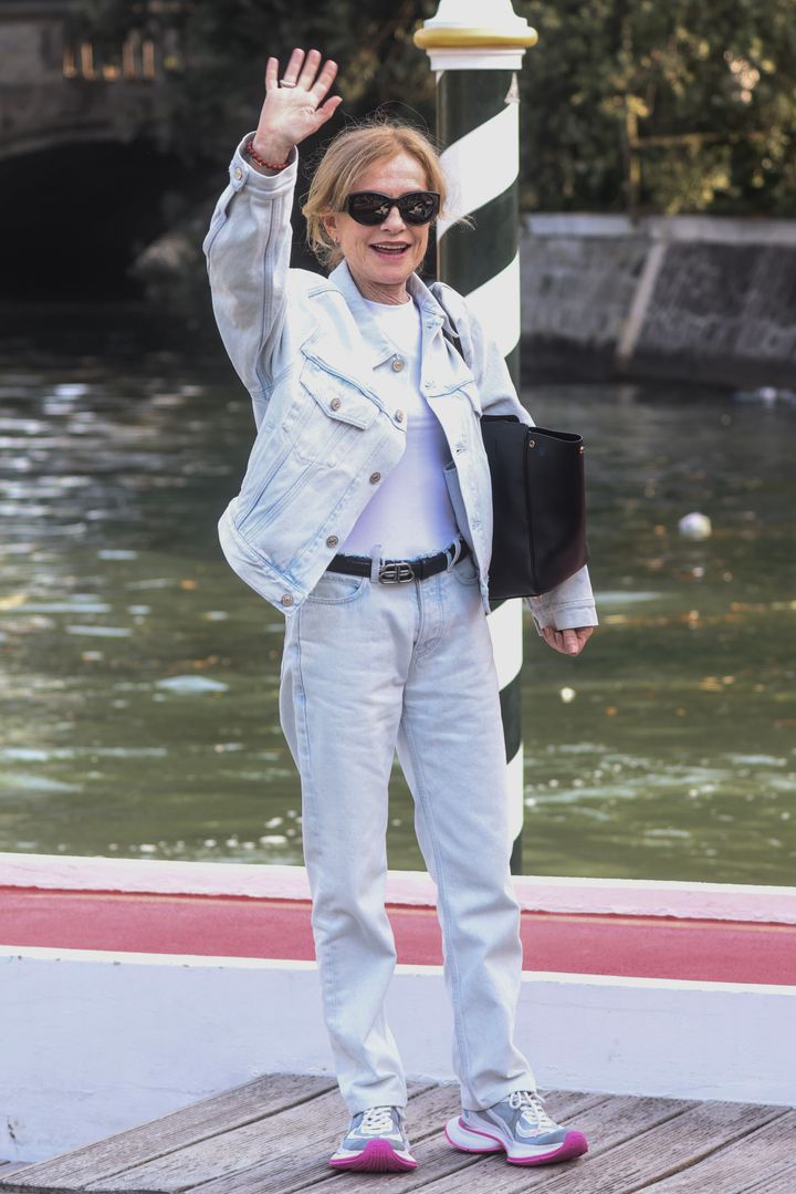 イザベル・ユペールもまた、背伸びをしないファッションを披露している。レッドカーペットでこそは真っ赤なバレンシアガBALENCIAGA)のガウンを着用したが、現地に降り立った彼女はメゾンが手がけたデニムジャケットとジーンズにスニーカーという出立ち。次の日はジャージのセットアップという、この上なくカジュアルなオフデューティスタイルを徹底している。とはいえ、どんなにカジュアルダウンしていても洗練されているあたりはさすがはスター。