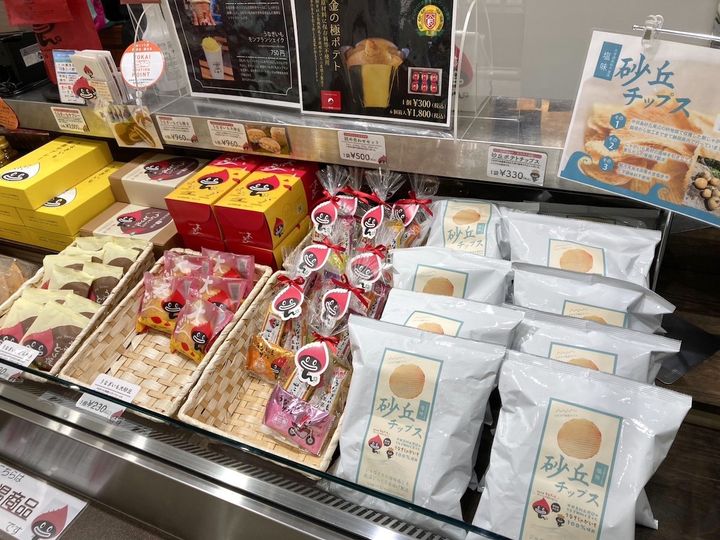 こちらは浜松駅のうなぎいもストアの様子です。かわいい「うなも」のお人形がお出迎えしてくれます。干し芋や静岡銘菓である大砂丘から、キャラクターグッズまで……ラインナップがとても豊富。 モンブランがたっぷりと使われた「うなぎいもモンブランソフト」もおいしかったです♪