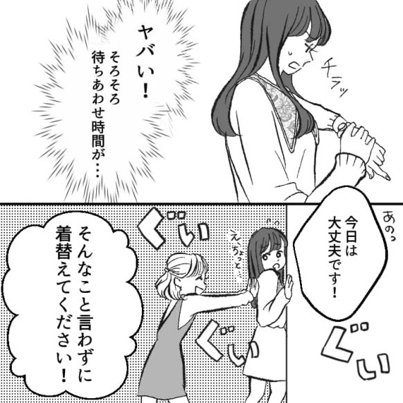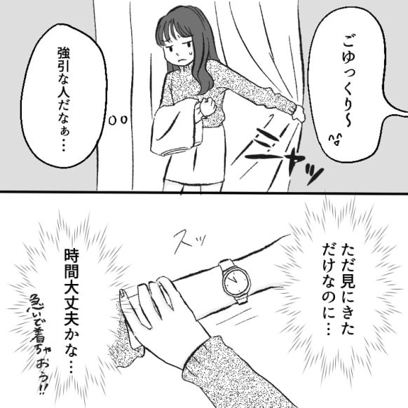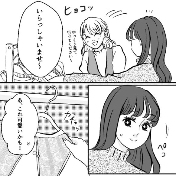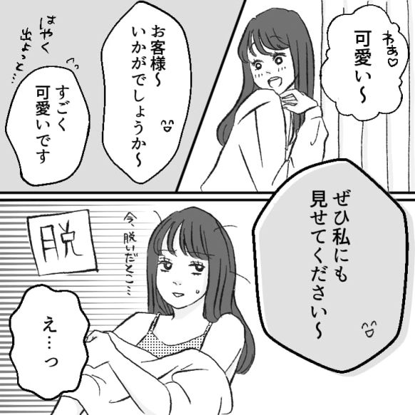 待ちあわせ時間より、早めに着いた彼女は洋服を見て待つのですが……?