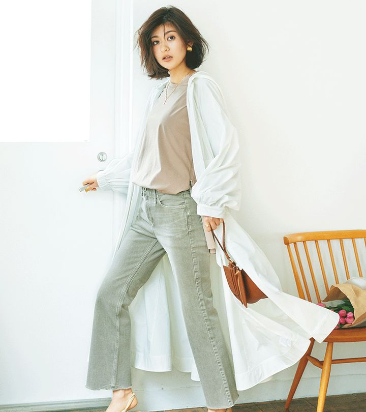 抗ウイルス素材VIBTEXとの初コラボは展示会でも大反響。とても軽量でウォッシャブルなのも魅力です。たっぷり生地を使ったシルエットが美しいコートはeco素材(リサイクルポリエステル)を使用、人にも地球にも優しい今どきコートです。(プレス 宇佐美菜々さん)コート[抗ウイルス・軽量・ウォッシャブル]¥19,000〈エミ ヨガ〉ロンT[抗ウイルス・ウォッシャブル]¥7,200〈エミ アトリエ〉(ともにエミニュウマン新宿店)デニム¥24,000(アッパーハイツ/ゲストリスト)バッグ¥29,000〈アトリエ アンボワーズ〉(アマン)イヤリング¥9,000〈イン ムード〉リング¥65,000〈アナプノエ〉(ともにフォーティーン ショールーム)ネックレス¥19,000(シャルロット ウーニング/フラッパーズ)