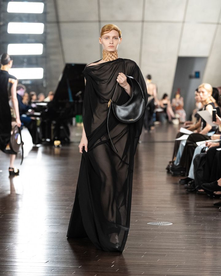 確かに、ドレープを描く一連のロングドレスは、彫刻を思わせるシルエットだった。