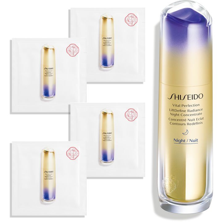 寝る前に塗るベスコス受賞名品で透明感&ハリ肌に。たっぷり4日分のパウチで体験してください。SHISEIDO バイタルパーフェクション Lディファイン ラディアンス ナイトセラム パウチ 4包