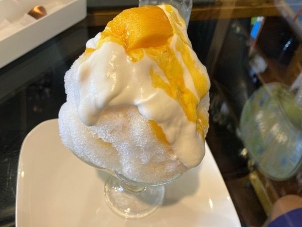 でも暑いからやはりかき氷を注文。生クリームマンゴーかき氷を頼んだのですが、クリームがたっぷり!