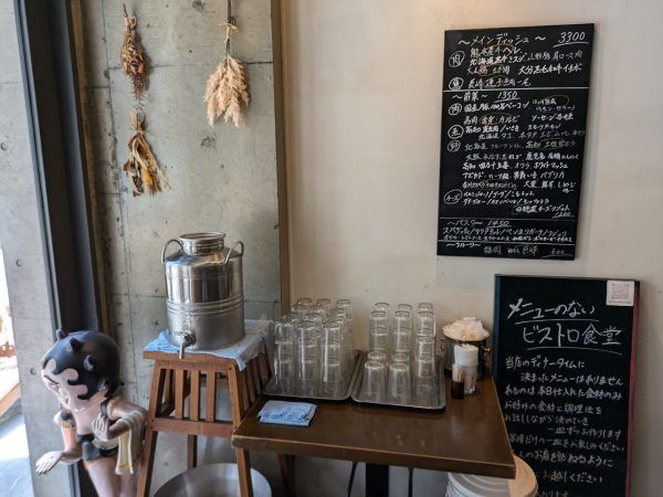 「メニューのないビストロ食堂」のディナーに決まったメニューはなく、あるのは食材のみだそうです。その日仕入れた食材とお客様の好みの調理法でお話をしながら作ってくれるそうです。価格は日ごとの食材で変わりますが、メイン・前菜・パスタ等、種類ごとに一律の金額にて提供されるそうです。
