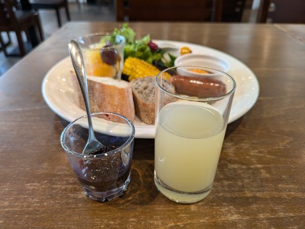 ミニドリンクは、100%グレープフルーツジュース・100%オレンジジュース・アイスミルクの3品から選べます。るなるなは、100%グレープフルーツジュースを選びました。
