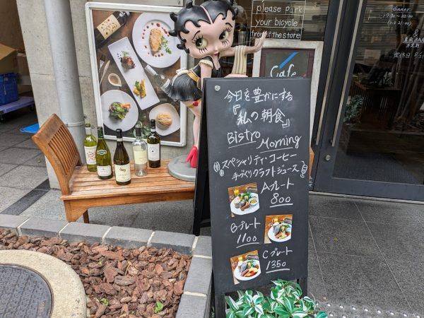 モーニング!休日に早起きしたら、るなるなは自分へのご褒美にモーニングをいただきます。看板には、「今日を豊かにする『私の朝食』Bistro Morning」♪ Aプレートが800円、Bプレートが1100円、Cプレートが1350円です。ん~。ならば、今日を豊かにするために、るなるなは朝食をいただこう!Aプレート!(笑)