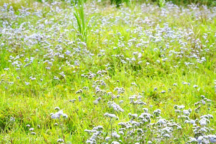 薄紫色の小さな花の房が特徴の、秋の七草にも数えられる「フジバカマ」によく似た、メルヘンチックなかわいらしい花畑を発見。思わず心が和みました。