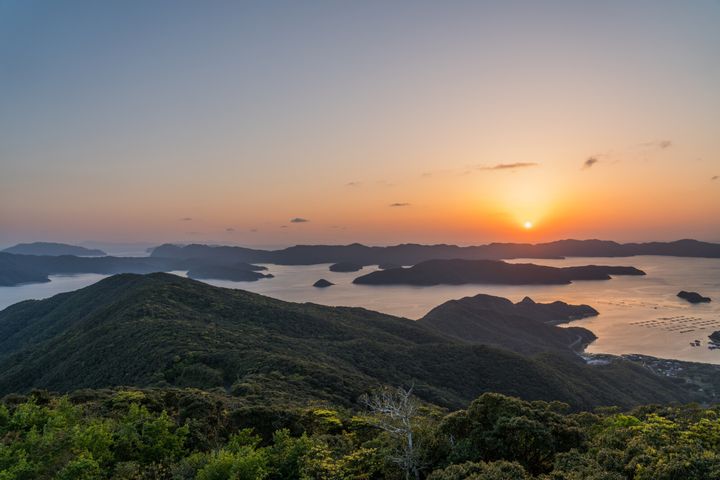 彼方に見えるのは加計呂麻島(かけろまじま)や請島(うけじま)や与路島(よろじま)、その間に横たわるのは大島海峡、そして入り組んだ複雑なリアス式海岸。とりわけ人気なのは、多島美をオレンジに染め上げる夕日鑑賞。この絶景は奄美十景にも選ばれています。