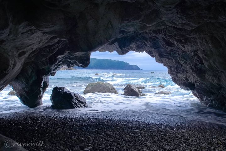 海岸沿いを歩いていて、ふと見つけた小さな洞窟。打ちつける波音が反響して迫力満点な絶景スポットでした。