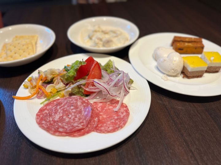 バイキング形式だったので、各々好きなものを。洋食、和食、中華なんでも揃っていたので、子供も大人も大満足なレパートリーでした。とても美味しかったです。