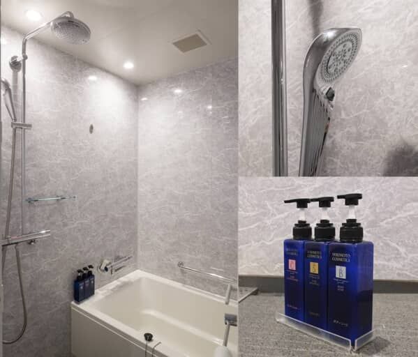 洗面・バス・トイレは全客室セパレートタイプで使い勝手がよかったです。バスタブはスーペリアツインルーム以上の客室に備えます。全ての客室に独グローエ社のレインシャワーと、リファのシャワーヘッド「ファインバブル S」を装備。バスアメニティは、髪のまとまりがいいミキモト コスメティックスでした。