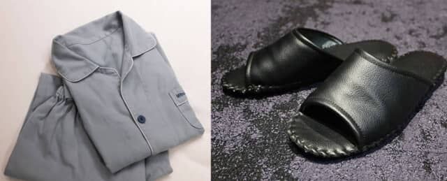 9階にある大浴場へはパジャマと館内履きのスリッパで行き来できます。ほかに足袋ソックスや、室内履きの使い捨てスリッパも用意してありました。