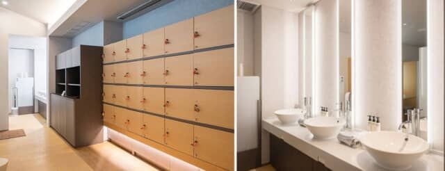 ▲アロマの爽やかな香りがただよう脱衣場には、鍵付きロッカーを設置
