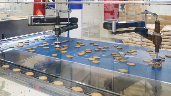 また、少し遠目にはなりますが、特注のドイツ製ピッキングロボットでラスクを掴んでいる様子は必見です。ただ掴んでいるようにも見えますが、一瞬で色や形、大きさを読み取り、基準を満たしたものだけがアームロボットで2枚1組にされているんです。技術に関心するとともに、健気に動くロボットがとてもかわいらしくてずっと見ていられます…。