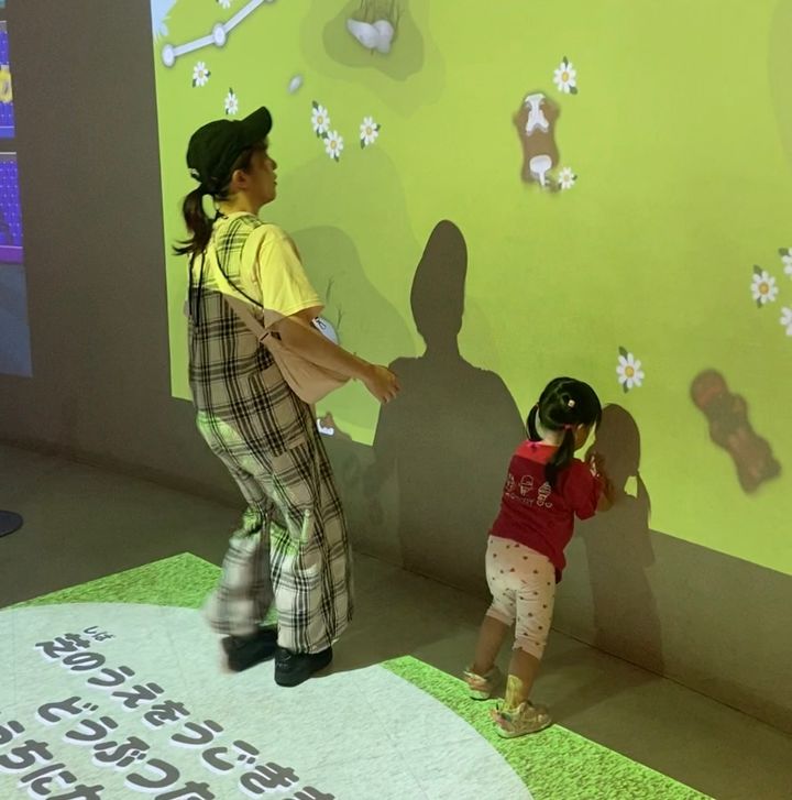 大きなモニターを見ながら体を動かして遊ぶコーナーです。ルールを理解しないまま順番がまわってきてしまったのですが、多分牛を動かして羊を柵の外へ誘導することがミッションのこのゲーム。思い通りに体が動かず苦戦しました(笑)。