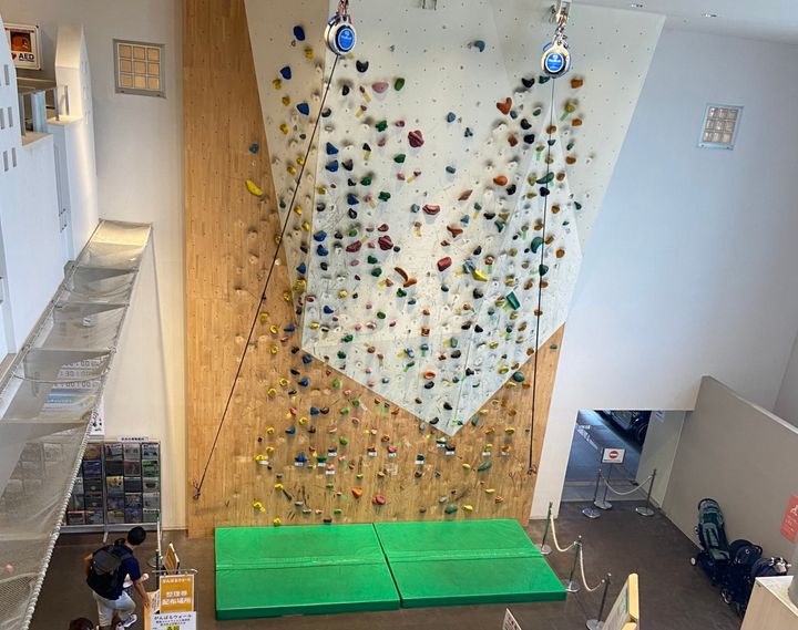 スペースあすれちっくの近くには存在感抜群の「がんばるウォール」という高さ7.5mのクライミングウォールがあります!こちらは小学生〜大人向けのアトラクションです。