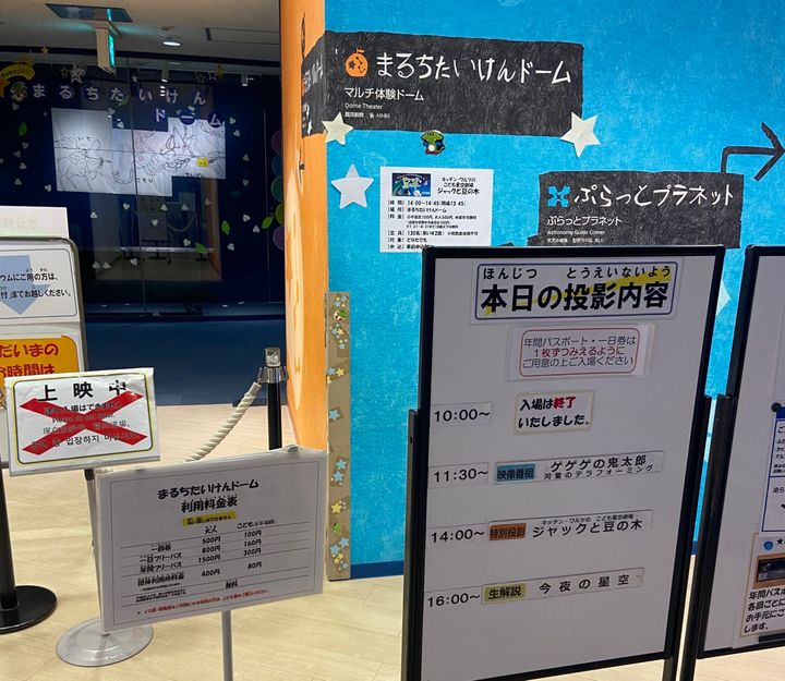 ギャラクシティの3階は「まるちたいけんドーム」という施設があります!ここはなんとプラネタリウムなんです。有料ですが今年の夏(2024年7月21日~8月31日)は18歳以下はまるちたいけんドーム観覧料が無料になるお得なイベントも行われていました。