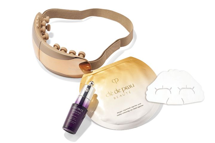 上から:温感+優しいタッピング。3Dアイマジックタッピング¥15,400(ドクターエア)目元集中ケアに。マスクイユーレジェネラン S[医薬部外品]15ml×6枚入り¥16,500(クレ・ド・ポーボーテ)目元に速攻潤いチャージ。リポソームアドバンストリペアアイセラム 20ml ¥8,250(コスメデコルテ)