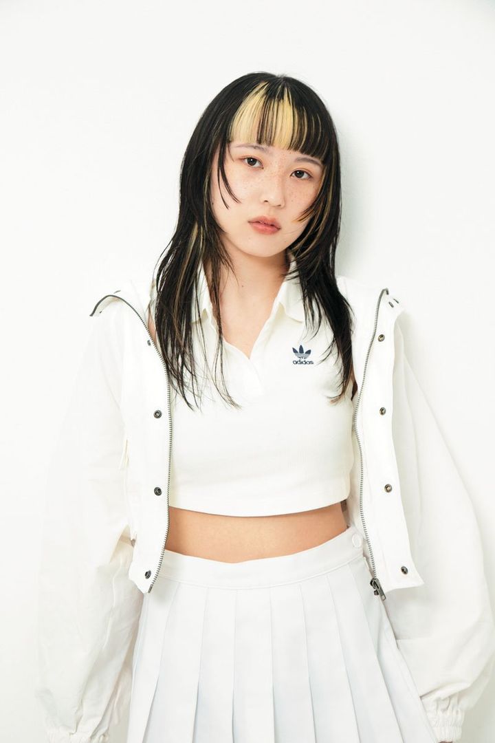 オン眉のパッツン前髪に入れた細めのイエローハイライトがおしゃれ! 前髪を広く取り、顔まわり中心にレイヤーを入れてカットする。全体をオフブラック、前髪の内側と顔まわりを中心に、薄めたアクリルイエローのハイライトをオン。ダークトーンとハイトーンのコントラストをパッキリと効かせることで、印象度をグッと高めて金メダルにマッチポイント!