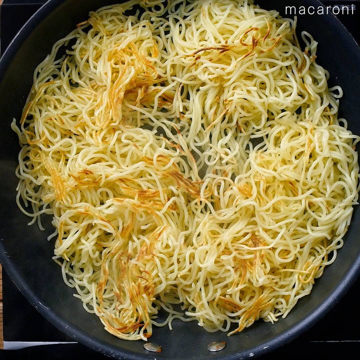 焼きそば麺を焼き付けて焦げをつけることで、香ばしさがプラスされます。