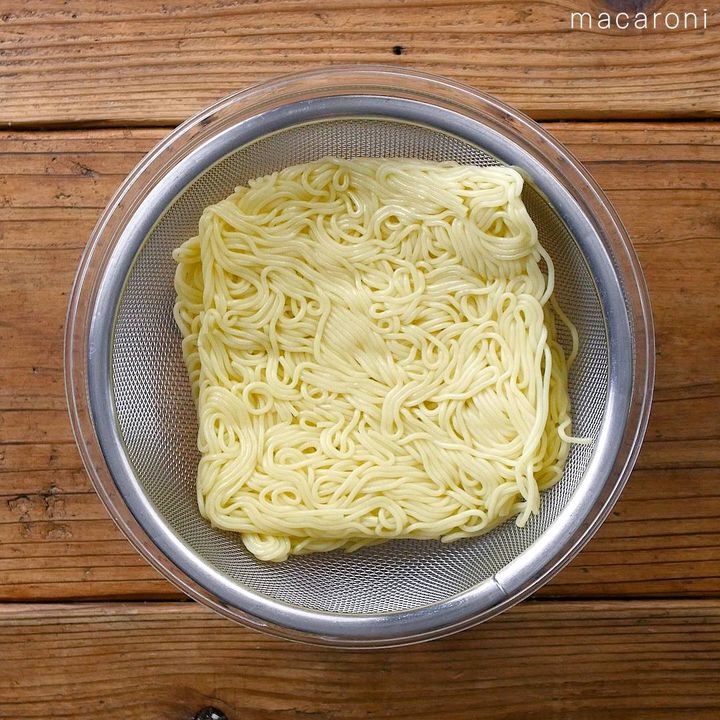 焼きそば麺は流水で洗うことで表面の油が落ち、味が染みやすくなります。