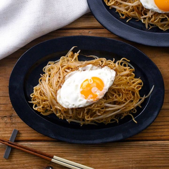 オイスターソースを加えることで味に深みが出て、具材はもやしだけでもおいしく仕上がります。