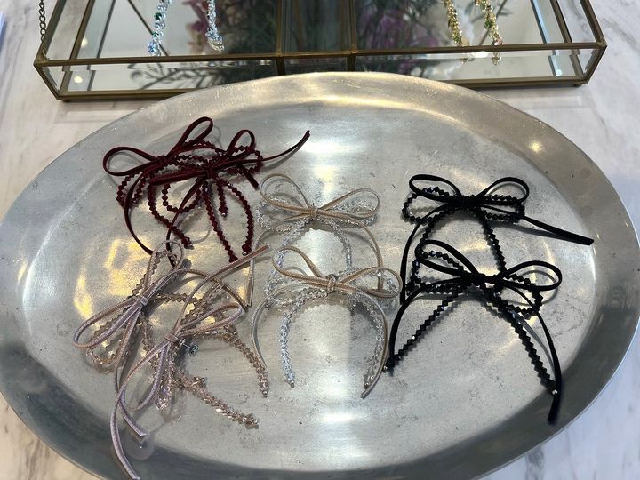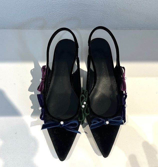 1つめは、深みの効いたカラーリボンが特徴的なこちら。上質なスエード素材と小さく光り輝くパールによって、フェミニンさと落ち着いた雰囲気を叶えます。シンプルコーデのアクセントとしてみたい。この秋を華やかに彩ること間違いナシ。
