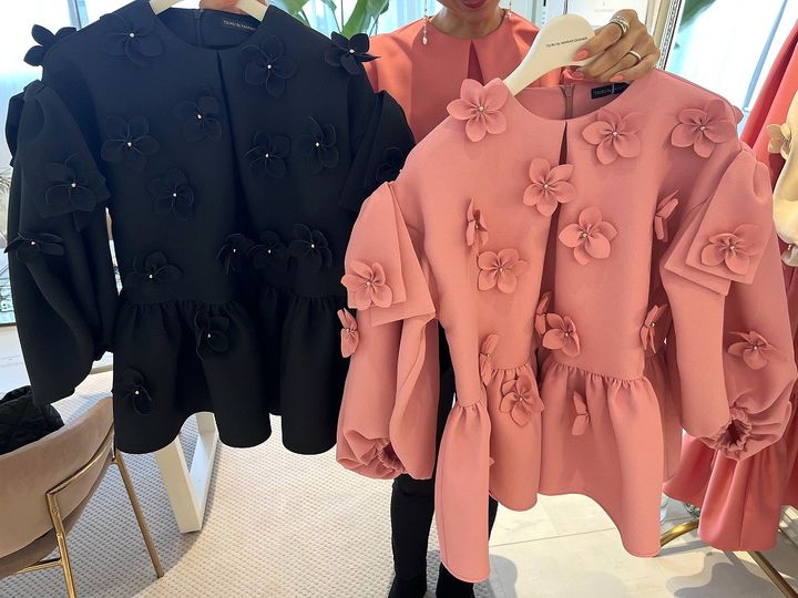3.一枚で華やかコーデに仕上げる「フラワーペプラムトップス」