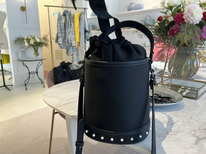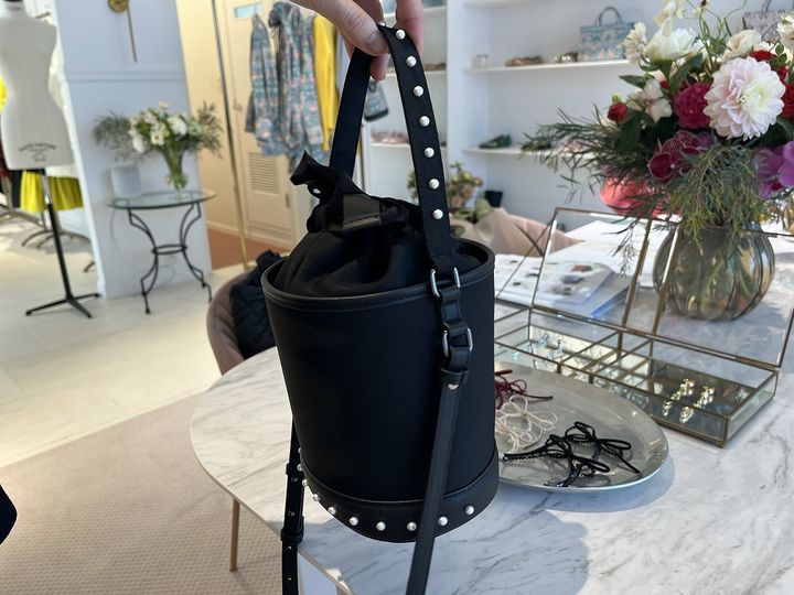 今回の展示会では「ブラッグ×パール」の組み合わせで魅力的なアイテムが勢ぞろい。特にこちらのラウンド型のアイテムバッグは可愛いだけじゃなく、容量も大きいため機能性も◎。バッグの取り出し口にあしらわれた黒リボンが、ちょい甘ポイントとなってコーデの印象にも変化をつけてくれます。もちろんショルダーは取り外し可能なので、ハンドバッグとしても万能に使用できます。
