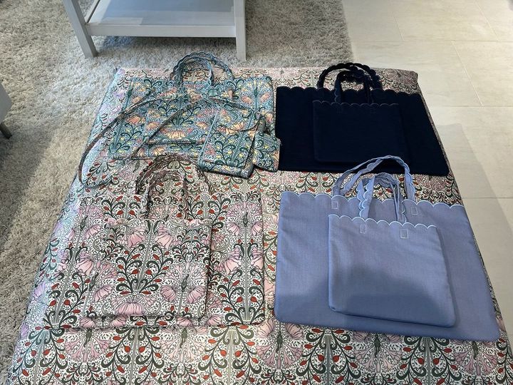 使い勝手◎な大人フェミニンなデザインのトートバッグが登場。先ほどのお洋服と同じデザインの柄に加えて、「フレンチブルー」と「ネイビー」の2色展開。パソコンもすっぽり入るデザインの方はお仕事に、小さめサイズのトートはお出ちょこっとしたお出かけに持ちたい。さSTORY世代にちょうどいい、マルチに使えるラインナップです。