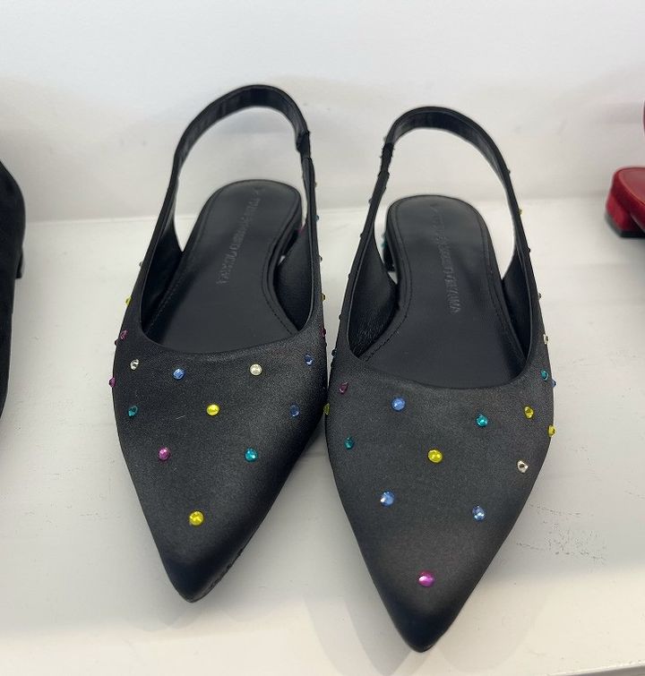 2つめは、カラフルな小粒ストーンが魅力的なこちら。繊細な光を放つデザインで幅広いコーデに馴染みます。素足のままでスラっと女性らしく履いても、流行りの「ソックス合わせ」で今っぽく履いてみるのも◎。定番コーデにマンネリ化したら、トライしてみて。派手過ぎない女性らしさが、シンプルでもロマンティックなスタイルを叶えます。
