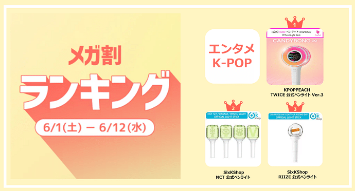 エンタメ・K-POPカテゴリでは、グローバルグループのペンライトが上位を独占しました。