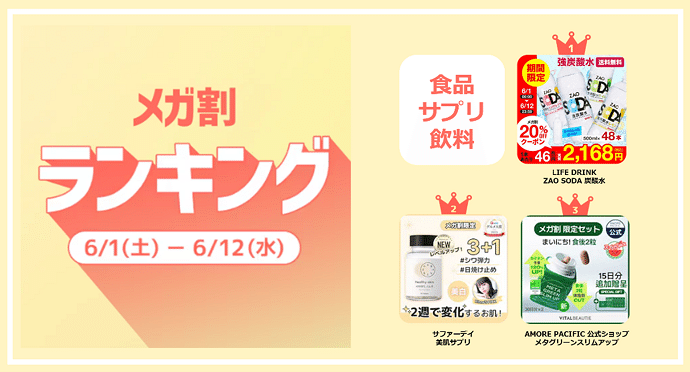※メガ割ランキング(集計期間:2024年6月1日~6月12日)