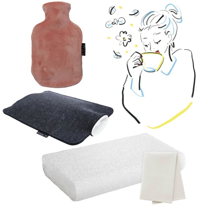 特に冬にオススメしたいのが湯たんぽ。お湯を入れて使用し、時間の経過と共に冷める従来のタイプは井坂先生も推奨。お腹まわりや、腰、足先など血行不良で冷えが気になる部分に当てて使用すると、布団に入った時点では温かく、深部体温の低下とともに自然に冷めてくれるので、入眠を妨げません。逆に充電式などで、一定の温度を保ち続けるタイプは睡眠時以外の使用に。
