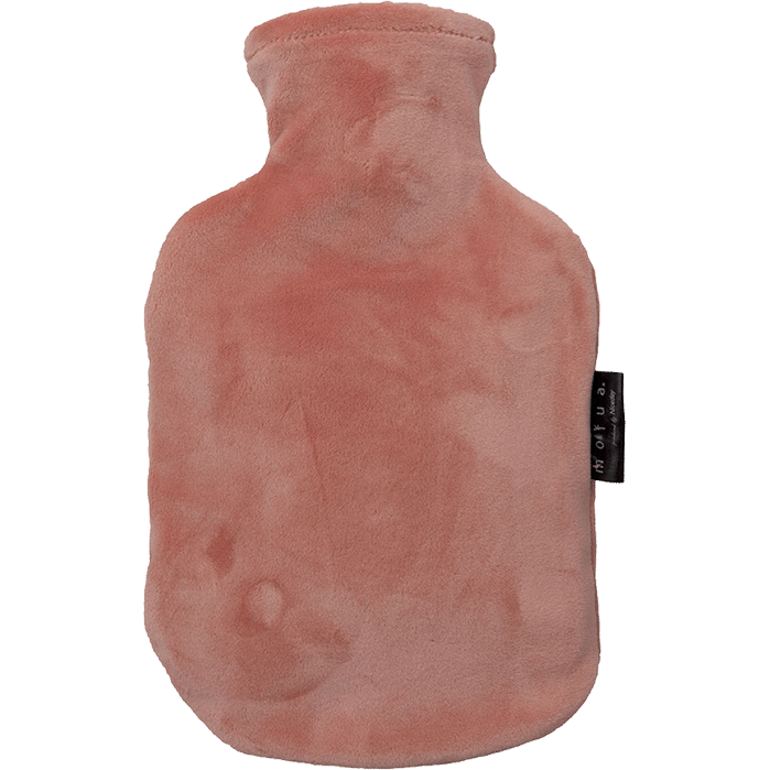 就寝時に使いやすい湯たんぽ。共にお湯を注いでフタを閉じるだけのシンプル構造。モフアなめらかパフ湯たんぽカバー 0.8L ピンク ¥1,980