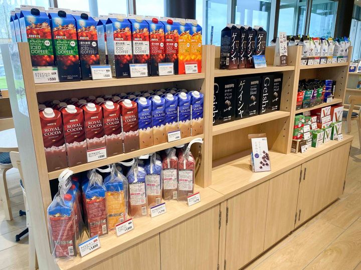 ドトールコーヒーショップ LAKUNAはくい店ではケーキやサンドウィッチ、その他の限定ドリンクもありました。また、コーヒー豆などグッズ類のお取り扱いも充実しています。