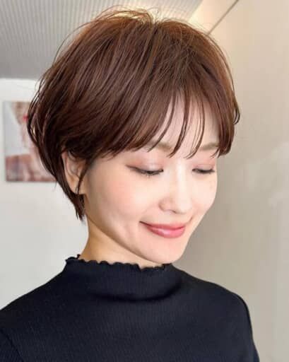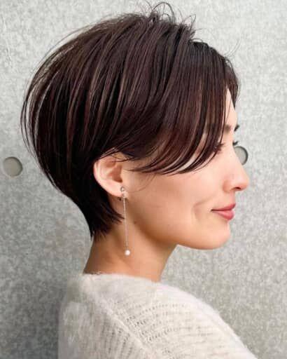 長め前髪とサイドバングが決め手。小顔&アカ抜けが一気に叶う【大人のショートヘア】