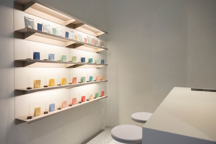 カードの色味がとってもキレイ! そして、無機質なお店で自分の選んだ豆のカラーが際立っていて、急に目の前に香りや味わいが登場したような感じがして気分が上がります!