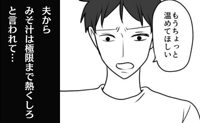 温め直す前のみそ汁を少し飲んでみましたが、文句を言われるほど冷めてはいませんでした。「これくらいよくない?」と言いましたが、「俺には熱々のみそ汁を出すようにして!」と一歩も引かない夫。私は、しぶしぶ納得しました。