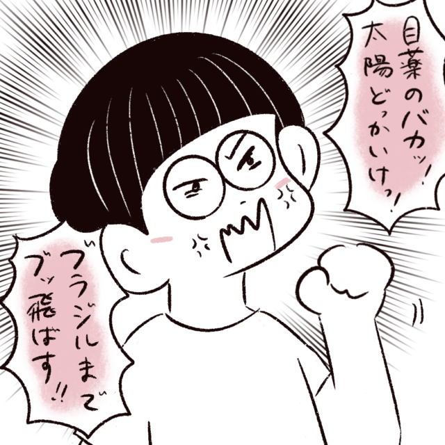 「目薬のバカッ!太陽どっかいけっ!」と次々と乱暴な言葉を口にする息子。
