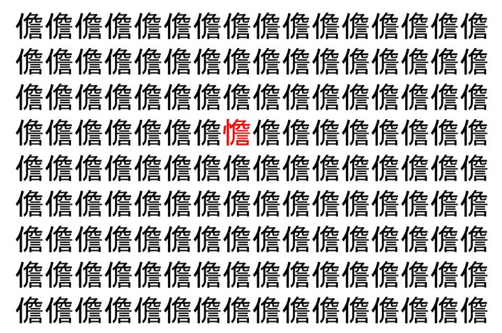 【脳トレ】「儋」の中に紛れて1つ違う文字がある!?あなたは何秒で探し出せるかな??【違う文字を探せ!】