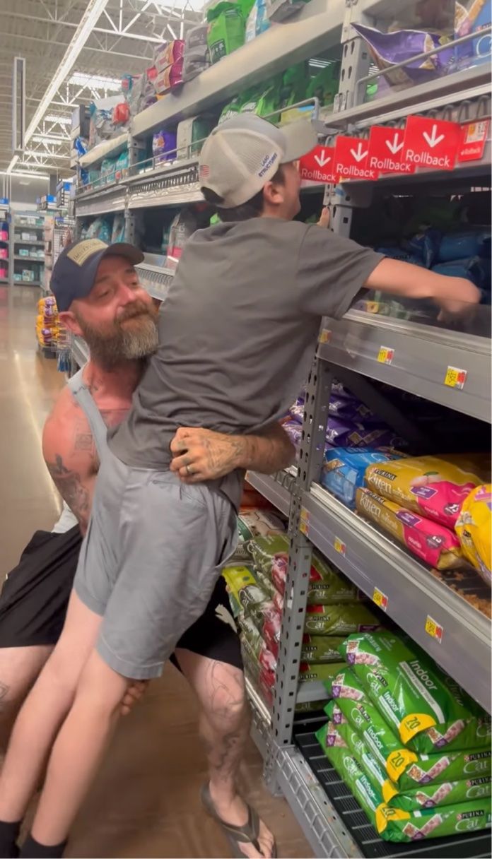 愛猫のためなら!商品棚の奥にあるキャットフードの袋を取るため父子が協力!!【アメリカ・動画】