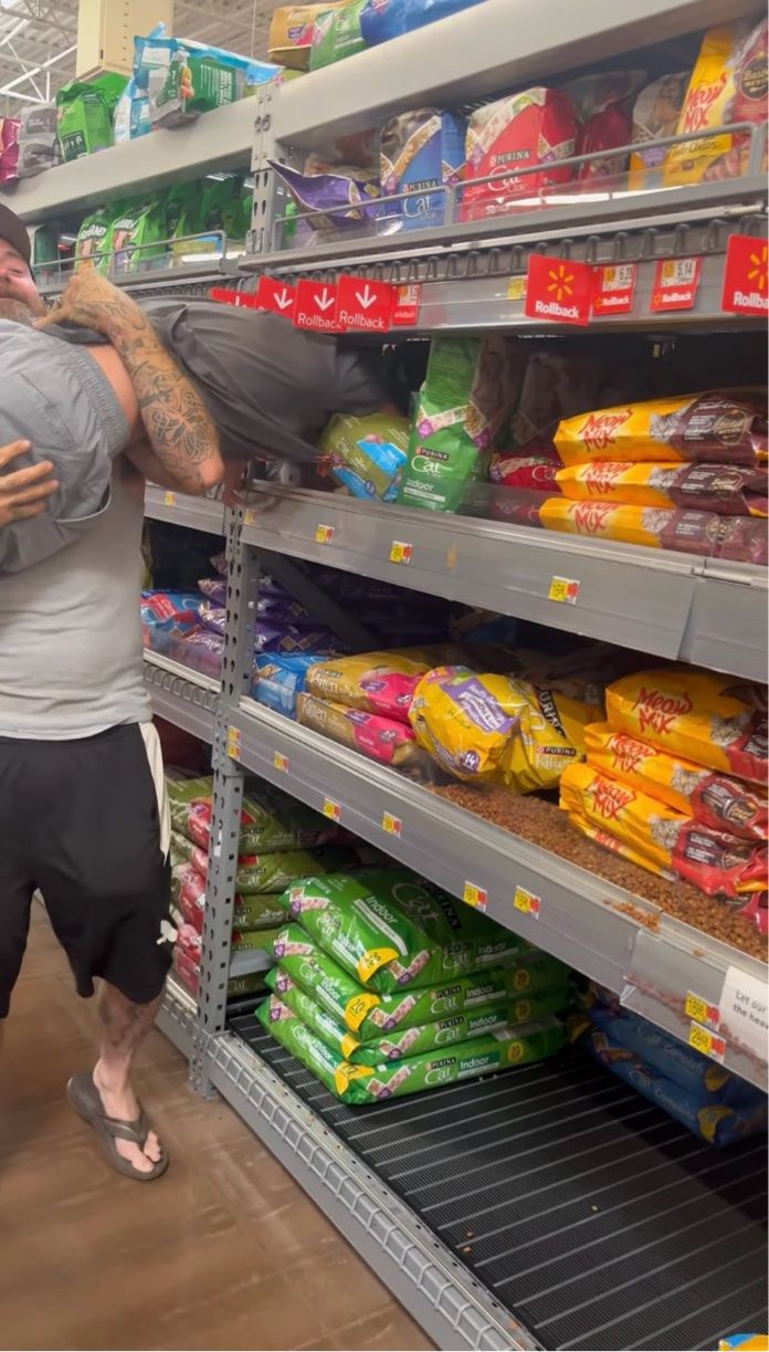 3. 愛猫のためなら!商品棚の奥にあるキャットフードの袋を取るため父子が協力!!【アメリカ・動画】