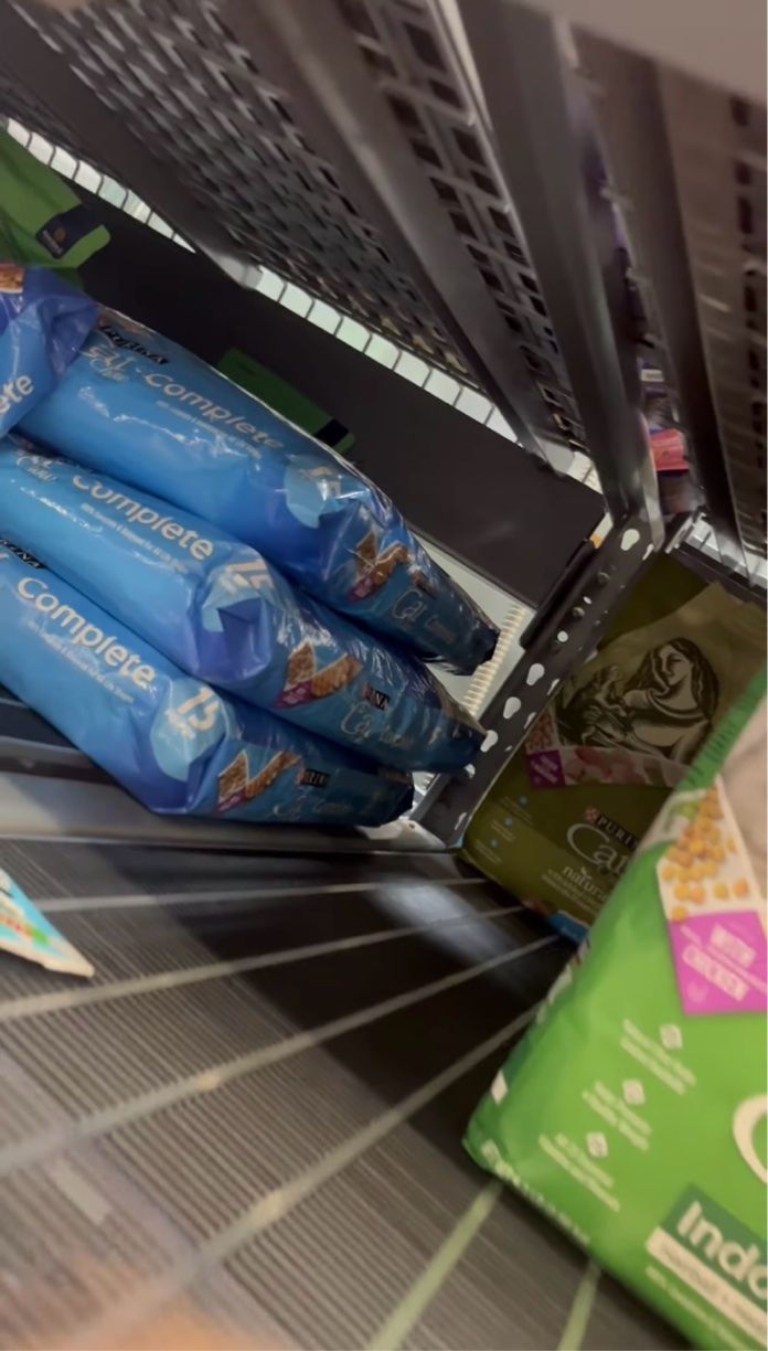 商品棚の奥にある残り1袋しかないキャットフードの袋を取りたい一家。 愛猫のためにも絶対にゲットしたいのですが、手を伸ばして届く距離ではありません・・・。