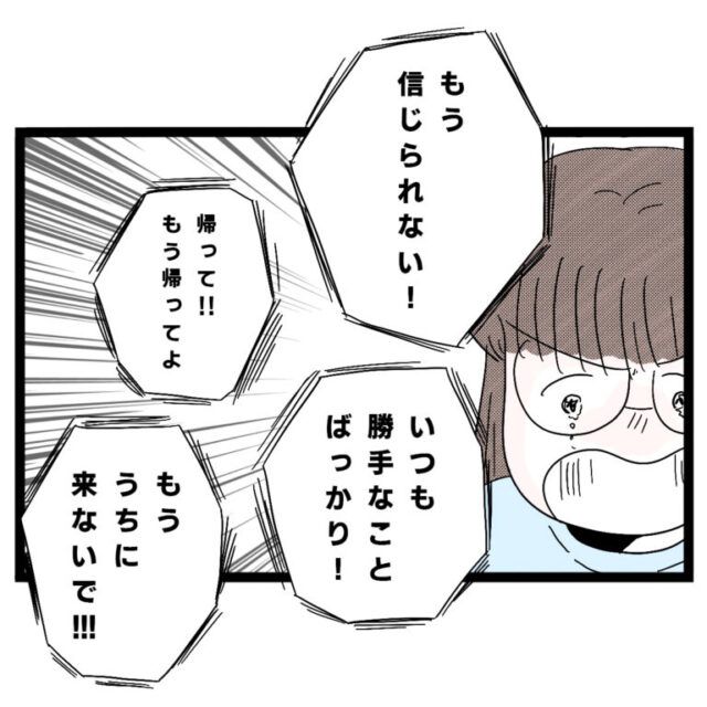 「もう、信じられない!いつも勝手なことばっかり!帰って!!もう帰ってよ。もううちに来ないで!!」とアサ子さんは泣きながら怒鳴ります。