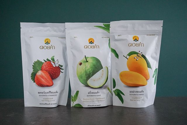 おいしいと定評がある「DOI KHAM BRAND(ドイカムブランド)」のドライフルーツから、ストロベリー、グァバ、マンゴーをチョイス(3袋セットで290バーツ)。すべて着色料や合成香料は使用せず、砂糖で甘味をつけています。
