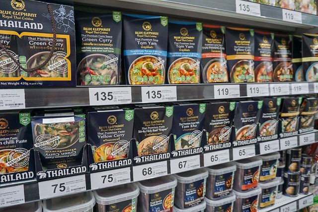 タイの人気レストラン「ブルーエレファント」のインスタント食品。カレーやトムヤムクン、ガパオにパッタイなどさまざまな種類がそろっています。