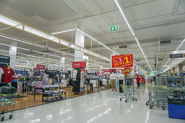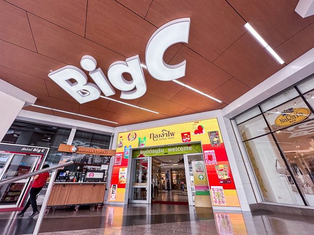「Big C」は、タイ国内で展開する大手スーパーマーケットです。なかでもラチャダムリ店は、BTSチットロム駅から徒歩5分ほどの距離にあり、駅直結のショッピングセンターやスカイウォークを抜ければ、屋根のあるルートのみでアクセス可能。立地もよく営業時間も長いことから、昼夜問わずたくさんの観光客で賑わっています。